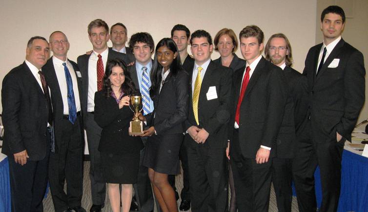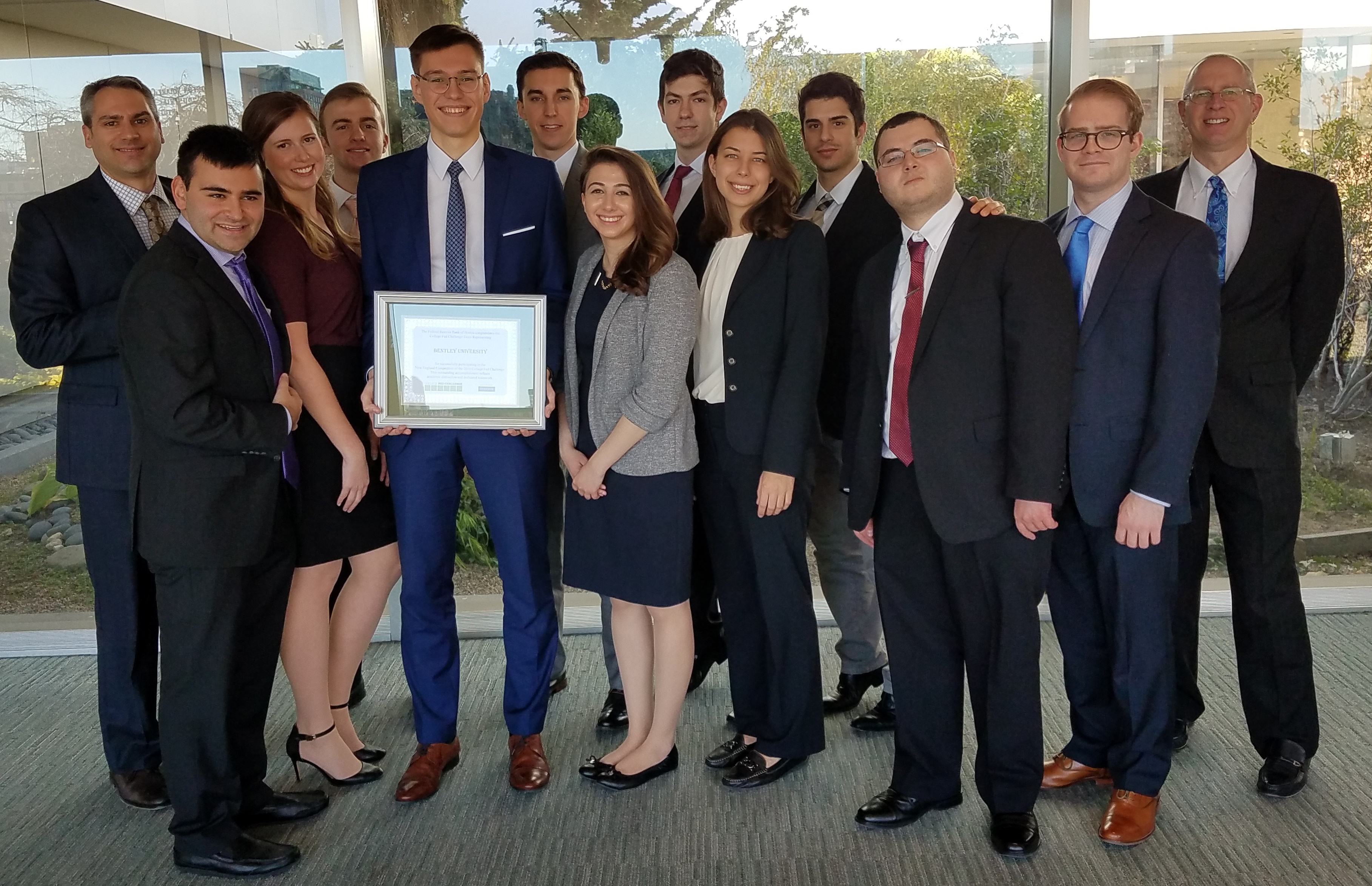 In the first year Bentley fielded a team (2007), they advanced to the regional finals round of the Boston competition. Bentley's 2008 team narrowly missed advancing to the 2nd round. Bentley’s 2009 and 2011 teams took 2nd place in the regional competition. The 2012 team took first place in the Boston region, and earned first-runner up in the national competition. The 2013 team placed third in the regional final competition. The 2014 and 2015 teams again won the regional competition, and earned a national honorable mention, while the 2016 and 2018 teams put in a strong showing by advancing to the regional finals round of Boston. And of course, the 2010 team bested over 100 teams and was crowned national champions!! There are many high quality schools and teams in the Boston area, so competition is strong. For more information about the competition and how it works see here and here.