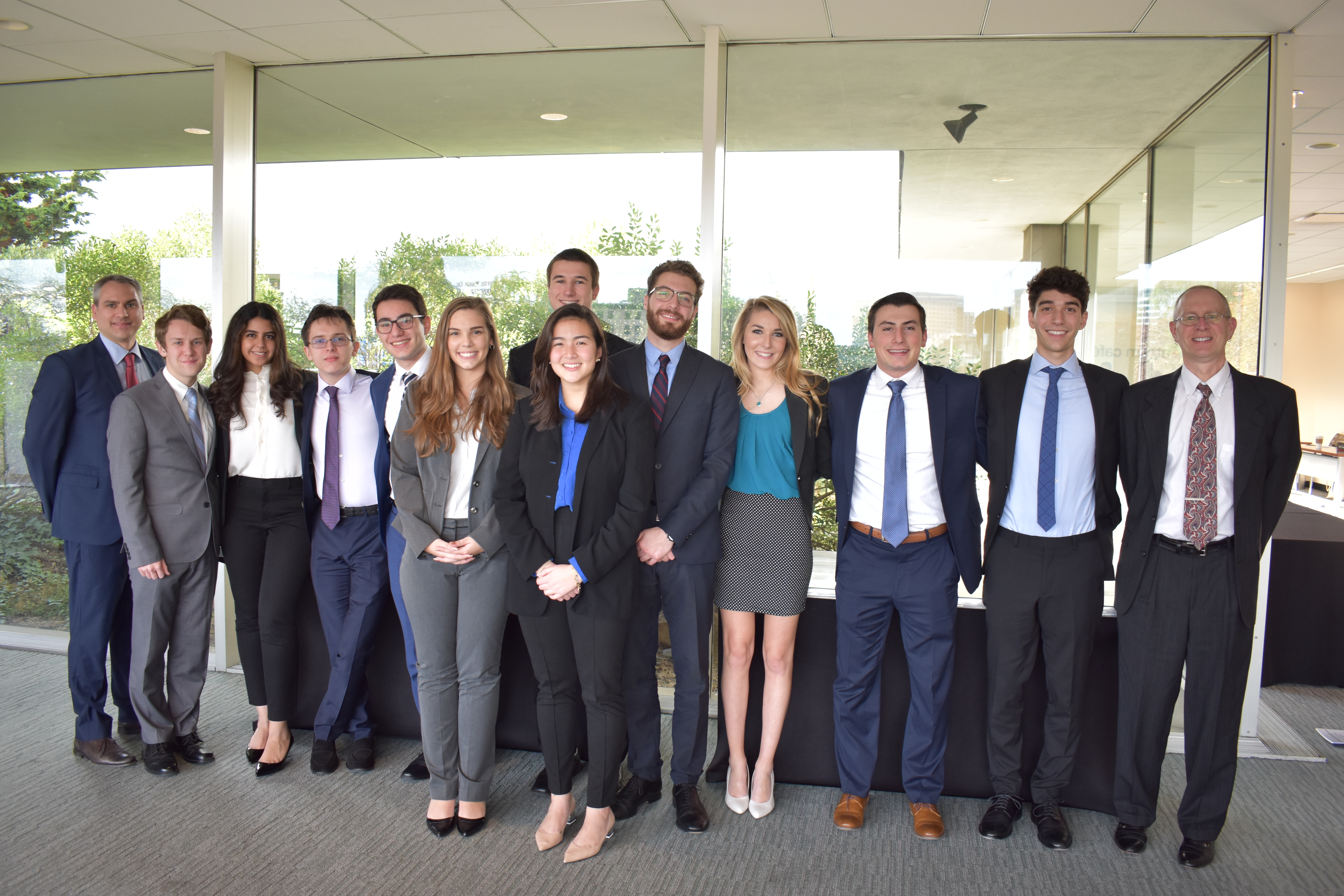 From left to right: Scott Guild (Director of Education, FRB Boston), Dave Gulley (Co-advisor), Ross Sabasteanski, Yulia Podolny, Aaron Jackson (rear, Co-advisor), Nick Fahmie, Edith Joachimpillai, Brett Kirkland, Matias Bojanic, Monika Aderbauer, James Cruise, Alex Nocella, Alfred Amasanti.