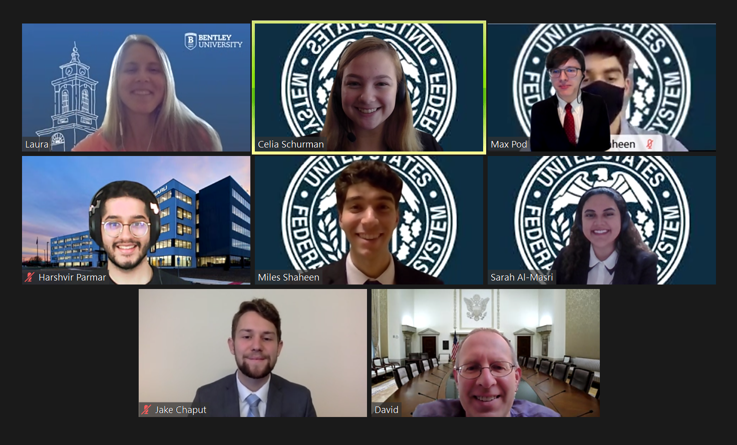 Bentley’s team competes against local schools at the Boston Federal Reserve, in November with the possibility of advancing to the National Finals competition in Washington DC in December.